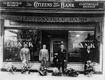 The Citizen’s Trust & Savings Bank, Clintonville Branch, was located in 1926 at 3296 North High Street. Left to right are Fred Horch, manager; Earl Buchler, manager, Steelton Office; Karl Kegelmeyer, manager produce exchange office; and Hershel Hill, assistant. It later became the Ohio National Bank, then Banc Ohio National Bank.